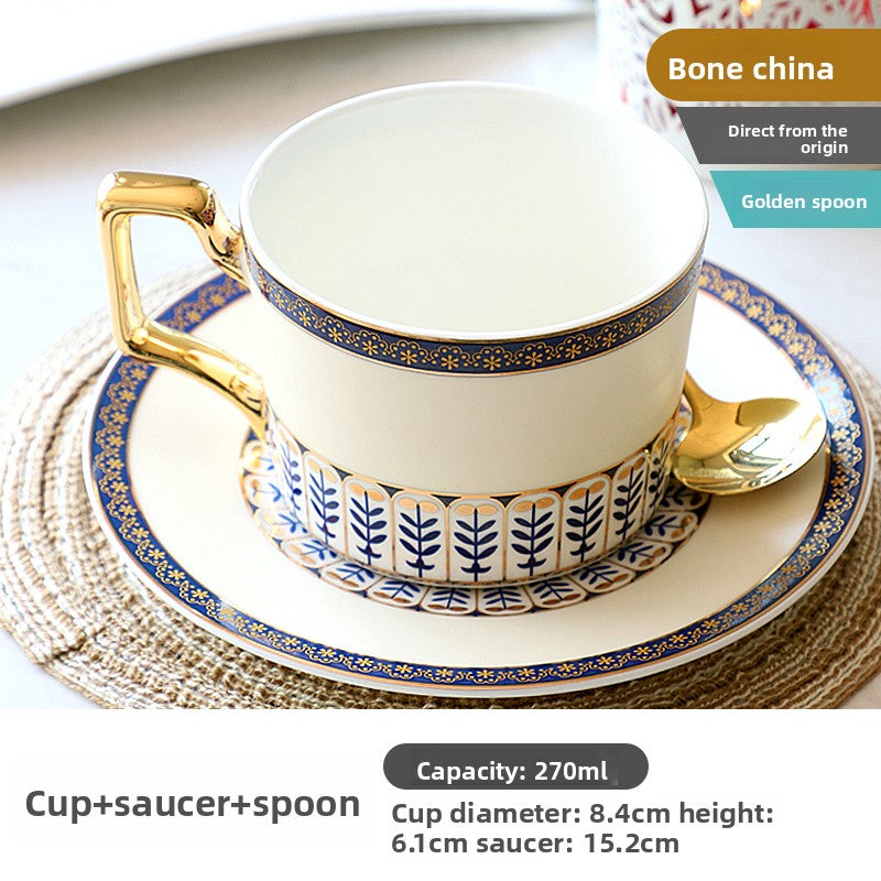 Luxury Bone China Coffee Cup and Saucer Set, Exquisite English Afternoon Tea Set, Ceramic Tea Set with Gloden Spoon