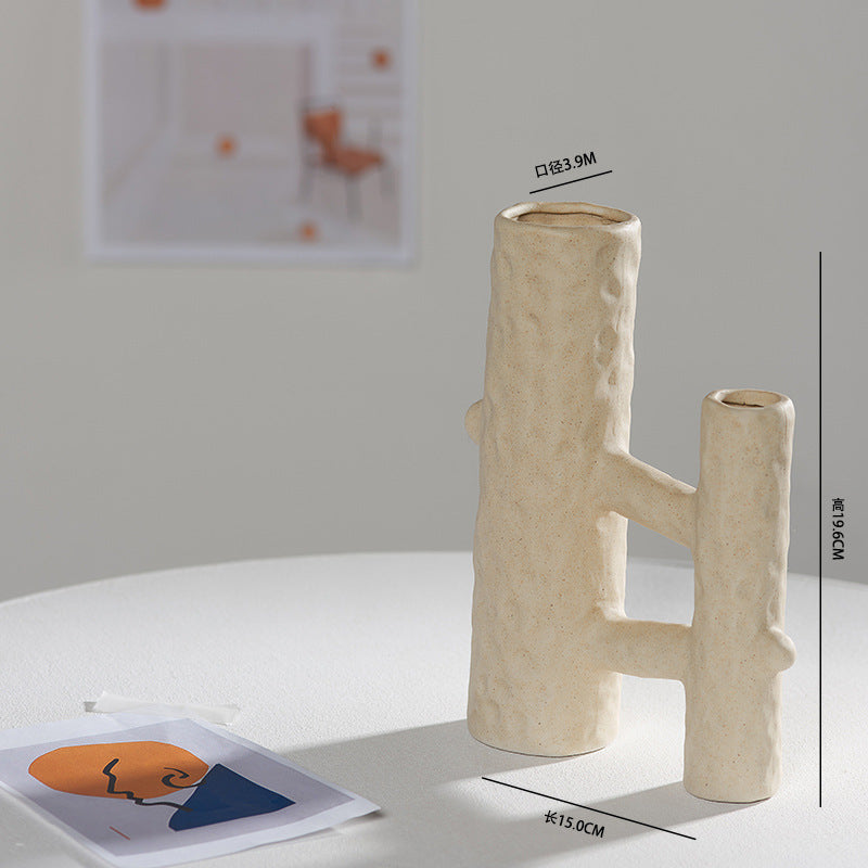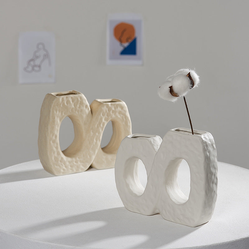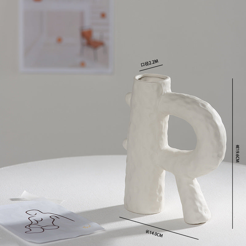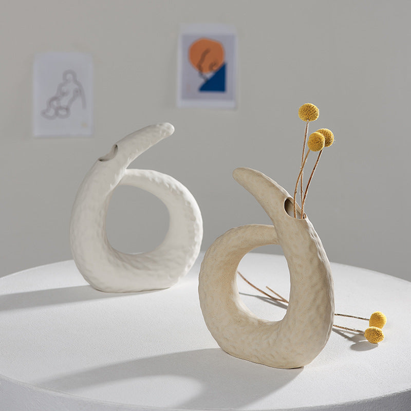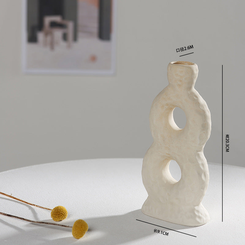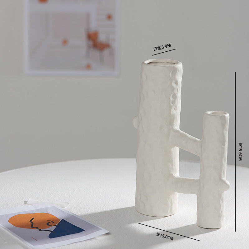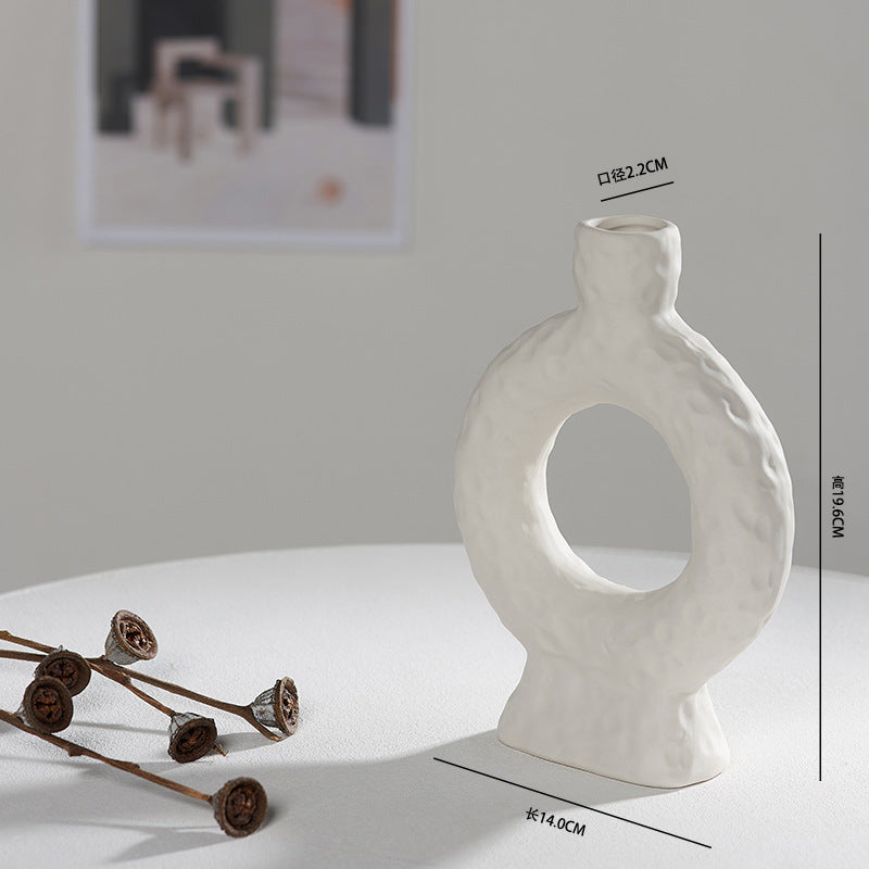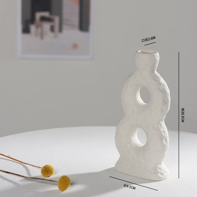Scandinavian White Ceramic Vase – Minimalist Decorative Flower Vase for Dried Flowers & Hydroponic Plants, Perfect for Living Room, Cafe, Studio & Guesthouse